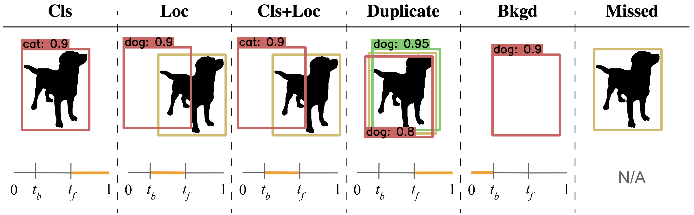 The 6 error types cited above were introduced in the TIDE toolbox paper, to which we refer for more details. For a concise definition, we will re-use the illustration posted above.