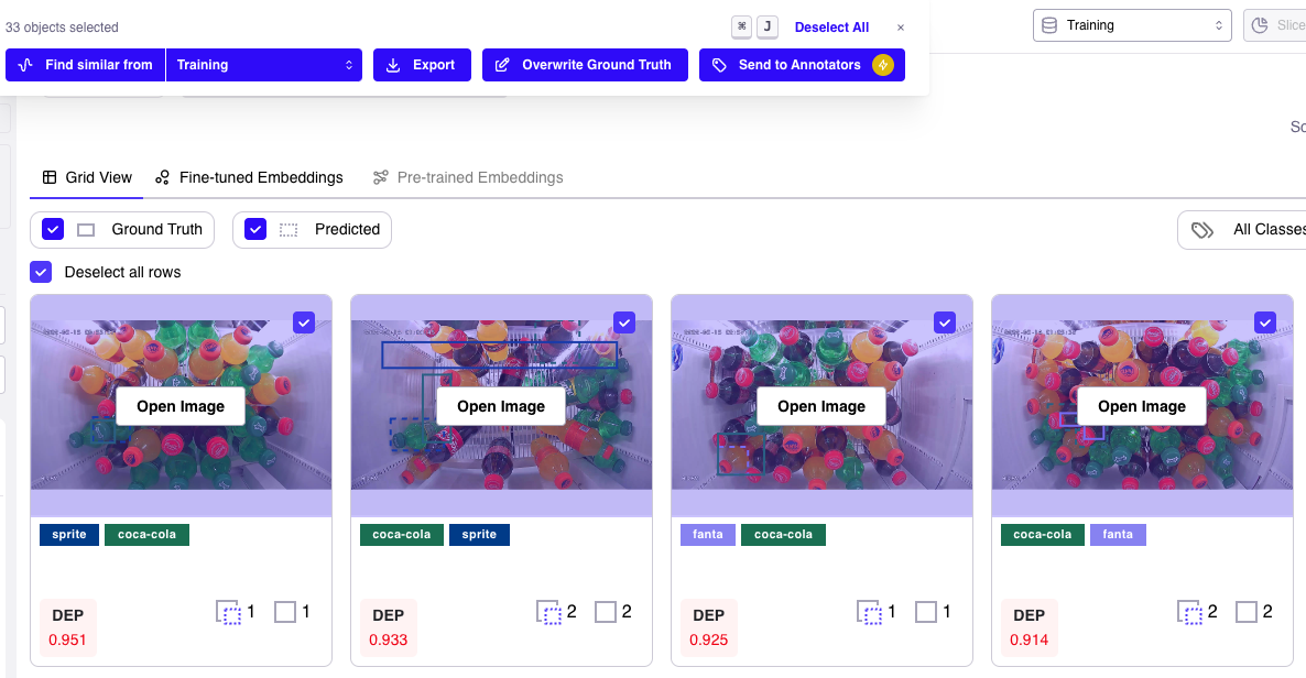 Galileo offers the possibility to fix your annotations in a few clicks from the console. After adding a filter by error type, select the images with miss-annotated boxes either one-by-one, or by selecting them all and, if any, unselecting the images with correct annotations.