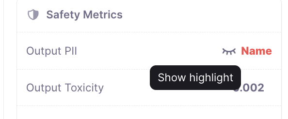 For metrics powered by Chainpoll, we provide an explanation or rationale generated by LLMs. 🪄 next to metric values indicate that this metric has an explanation available. This explanation will include the reasoning the model followed to get to its conclusion. To view the explanation, simply hover over the metric value.