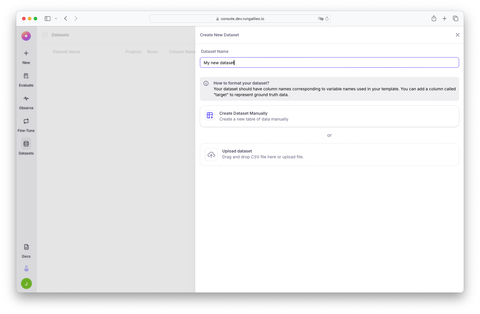 You can create a new dataset by running:- A dictionary mapping column names to lists of values (as shown above).
