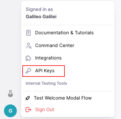Go to your Galileo Console settings and select API Keys