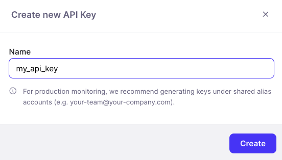 Give your key a distinct name and hit Create