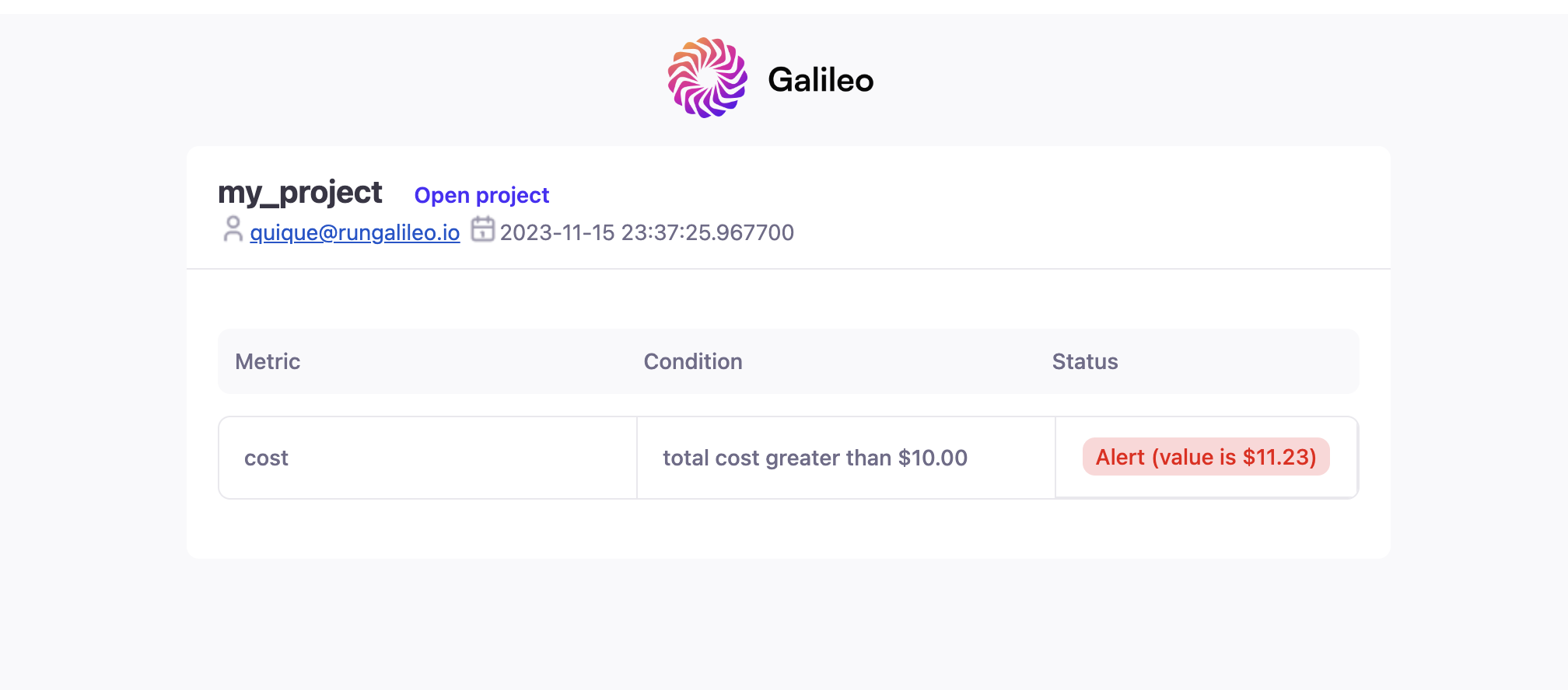 Exceeding costs: If you want to get alerted with an uptick in cost (above $10/day, you select