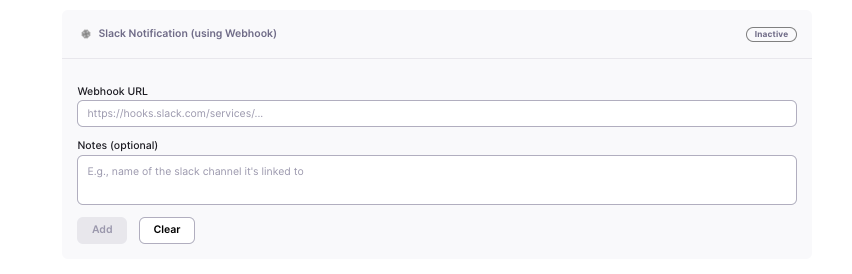 To get Alerts via Slack, you’ll need to configure your workspace to receive slack messages via webhook URLs. You’ll first need to follow Slack’s instructions to generate a webhook URL:- Create a Slack app. This application will be used to send your notifications to your Slack workspace.